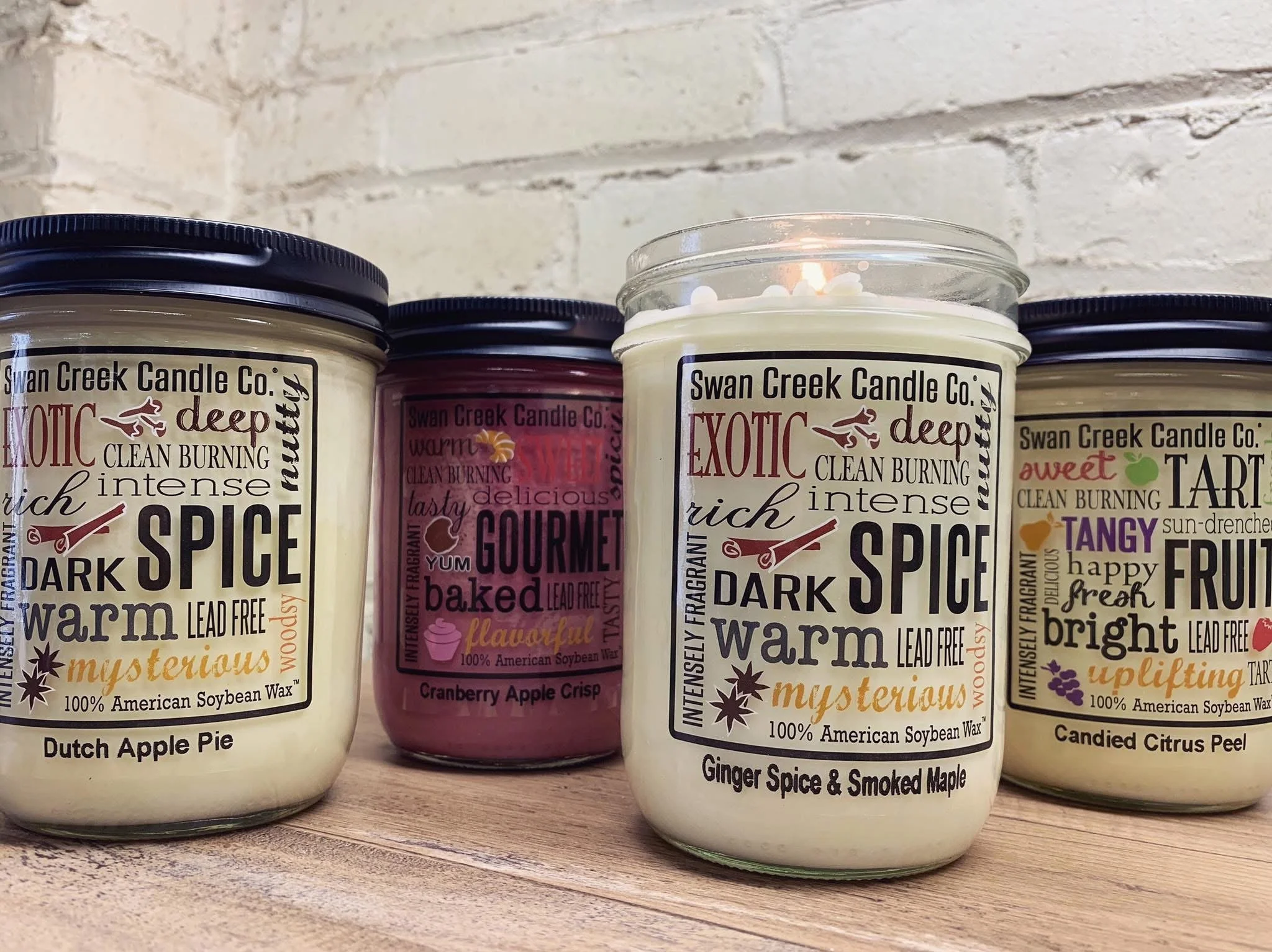 Swan Creek Candle Co. dedicates every effort to creating superior candles. Our demanding of purity, cleanliness and burn standards have kept us searching for new innovative wax products. We have discovered environmentally friendly American Soybean Wax. This all-natural wax outperforms petroleum-based paraffin in every way. We believe American Soybean Wax is of exceptional quality, and we know you will see the difference in our products!